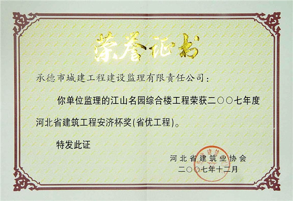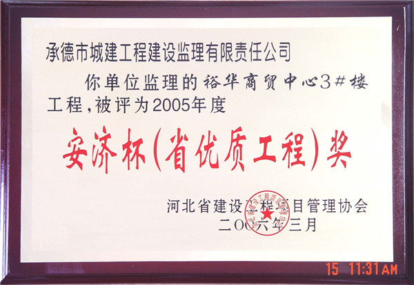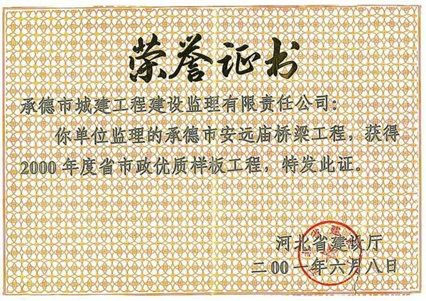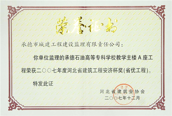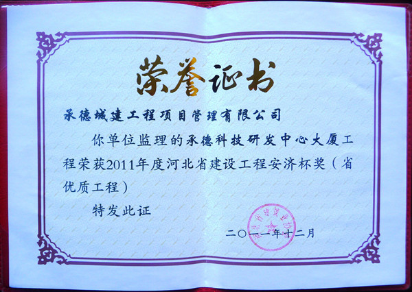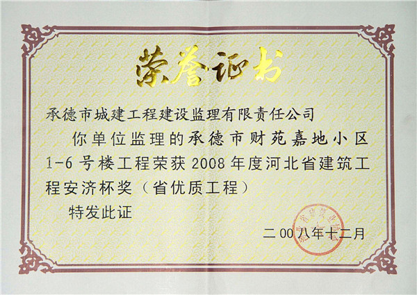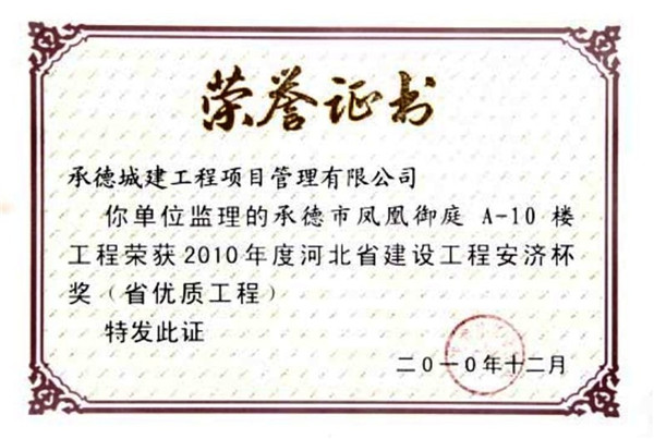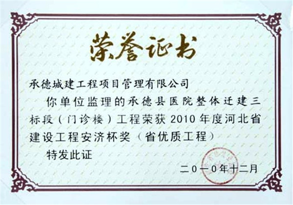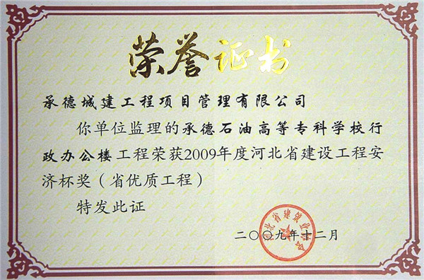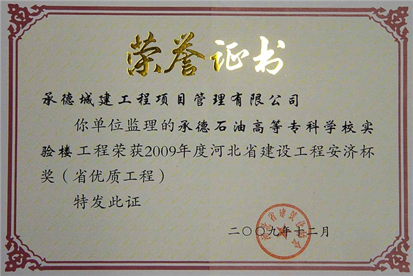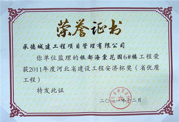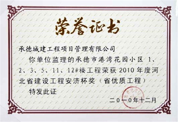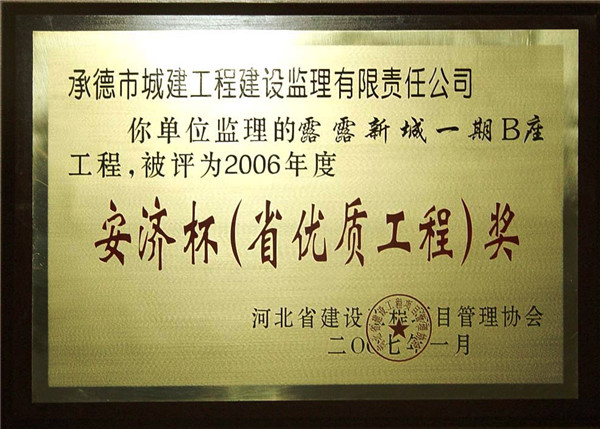 省級榮譽(yù)——優(yōu)質(zhì)工程