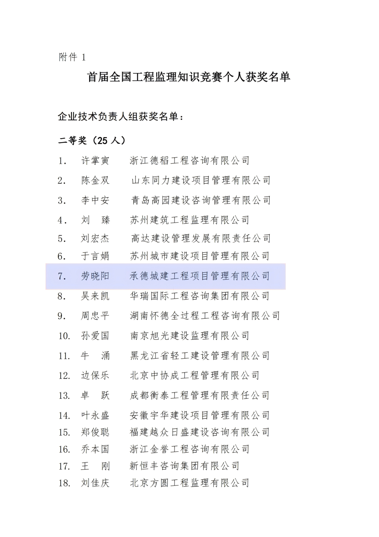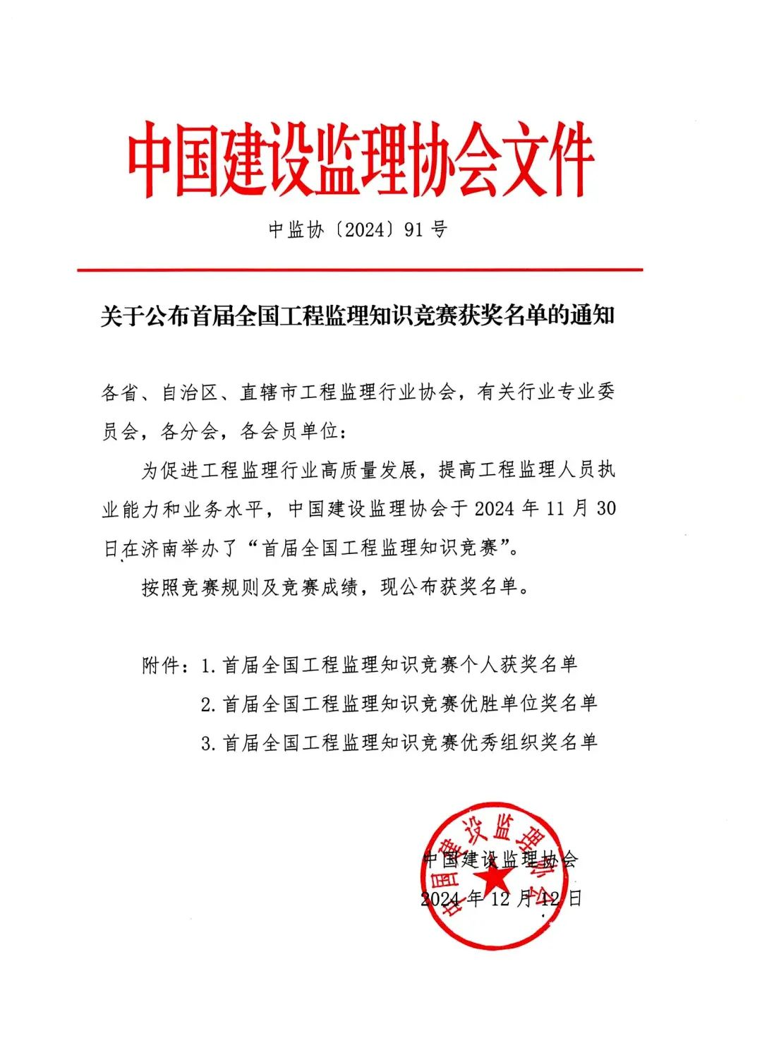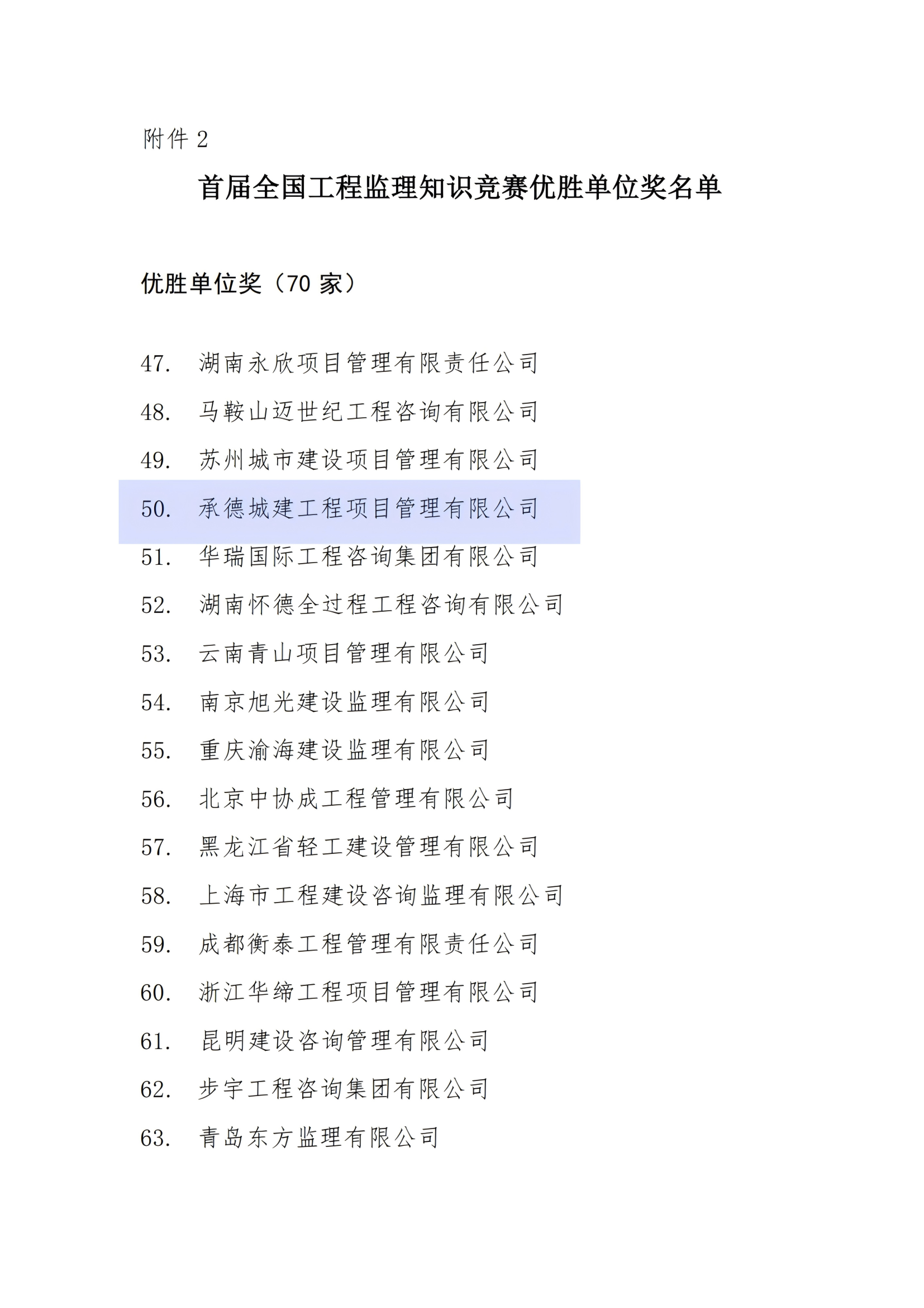 熱烈祝賀承德城建工程項目管理有限公司在首屆全國工程監(jiān)理知識競賽中榮獲“全國優(yōu)勝單位獎”! 我們的勞曉陽同志更是在企業(yè)技術負責人組中榮獲二等獎,展現了承德城建的卓越實力和奮斗精神!